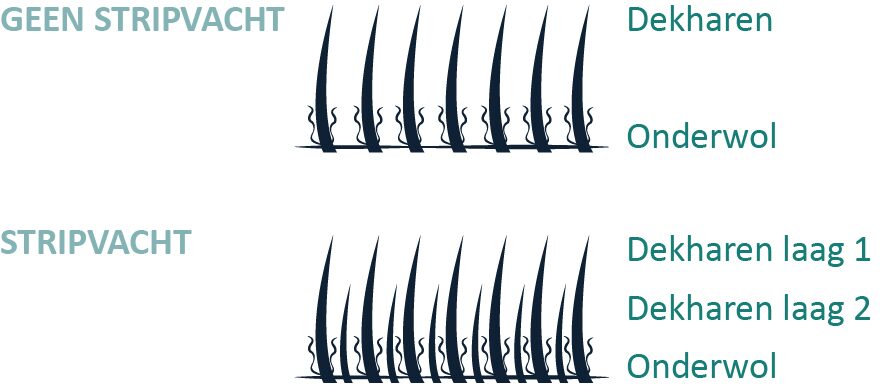 Als er geen stripvacht is worden alle dekharen verwijderd. De onderwol blijft dan over. Bij de stripvacht wordt dekharen laag 1 verwijderd en blijft dekharen laag 2 en de onderwol staan.